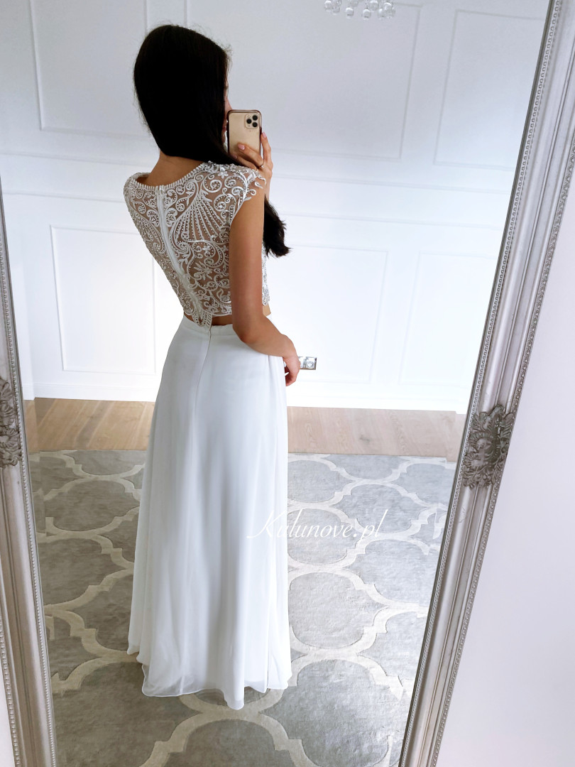 Cynthia - klasyczna, prosta suknia w kolorze śmietankowym Okazje