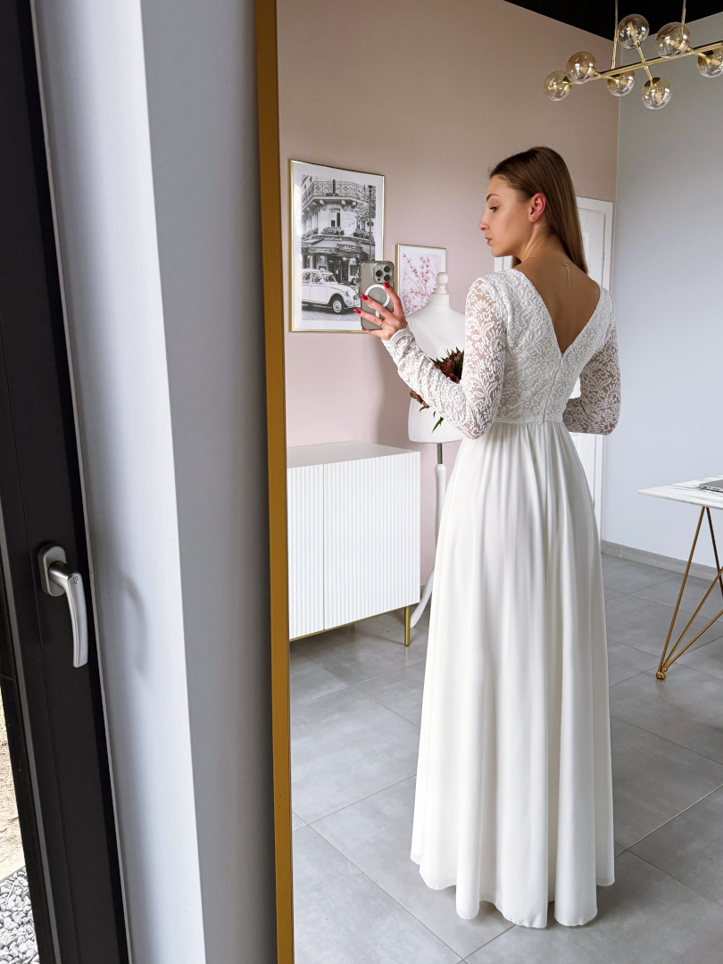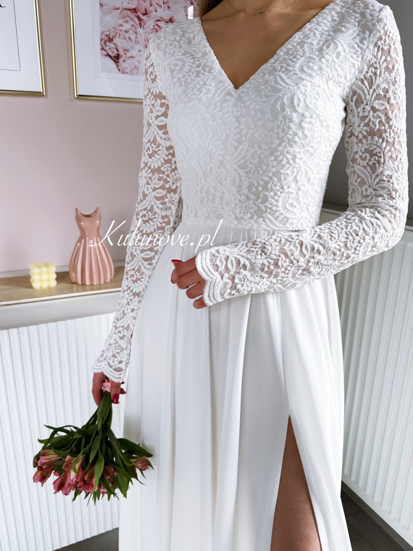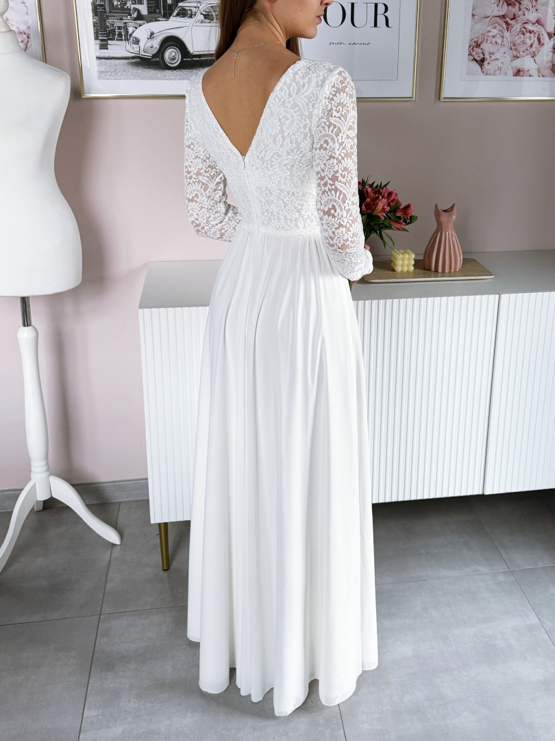 Meggy - sukienka koronkowa z szyfonowym dołem i dekoltem V