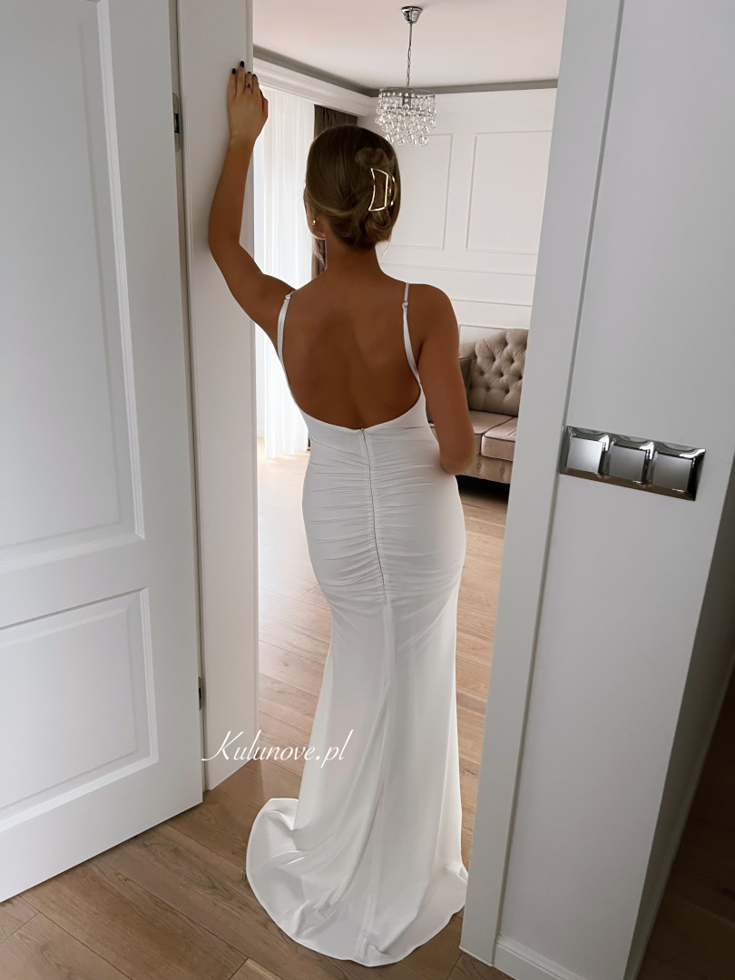 Suknia posiada podszewkę oraz wszyte miseczki.