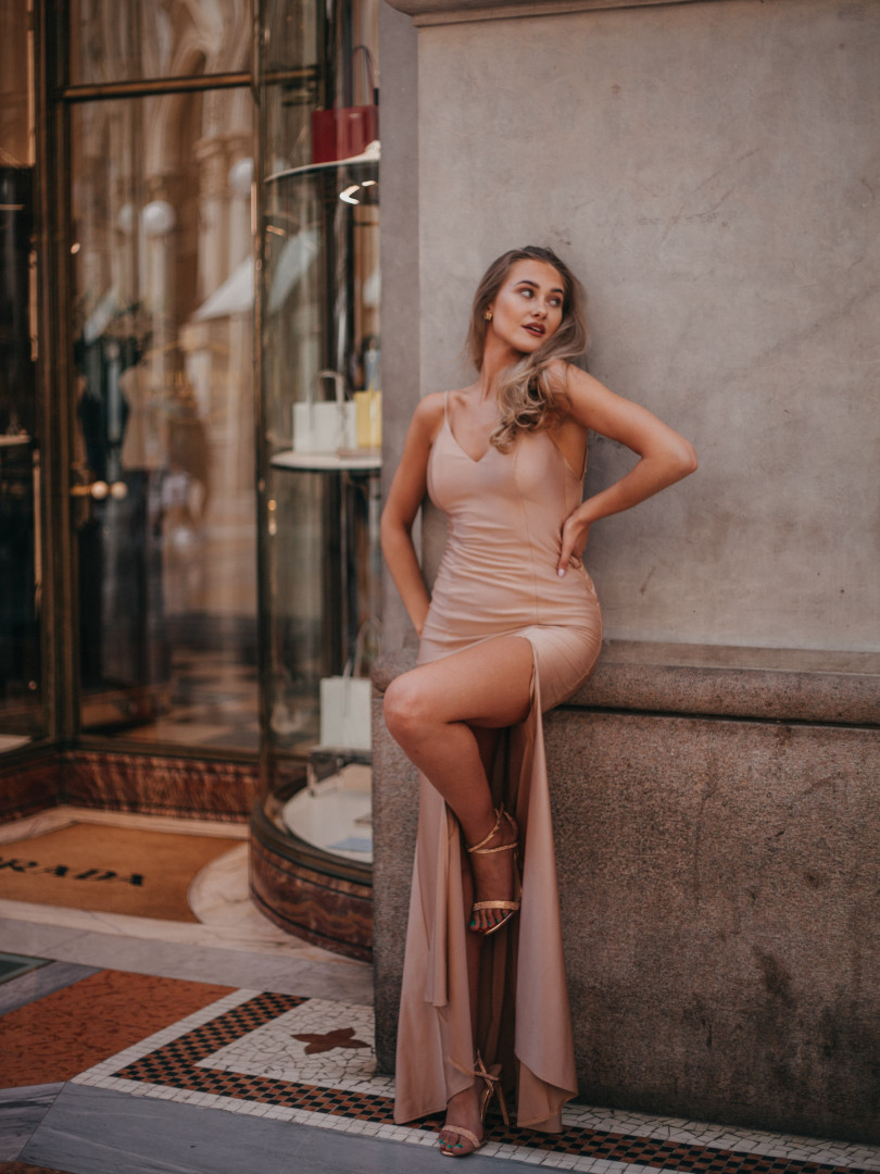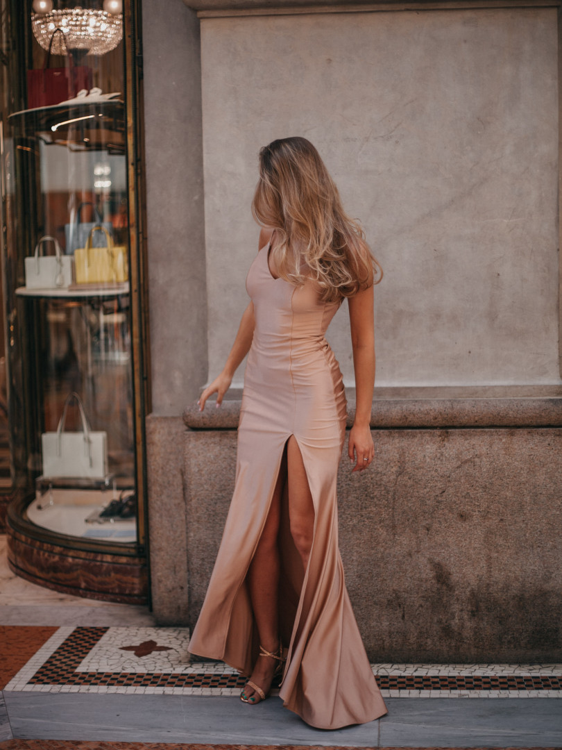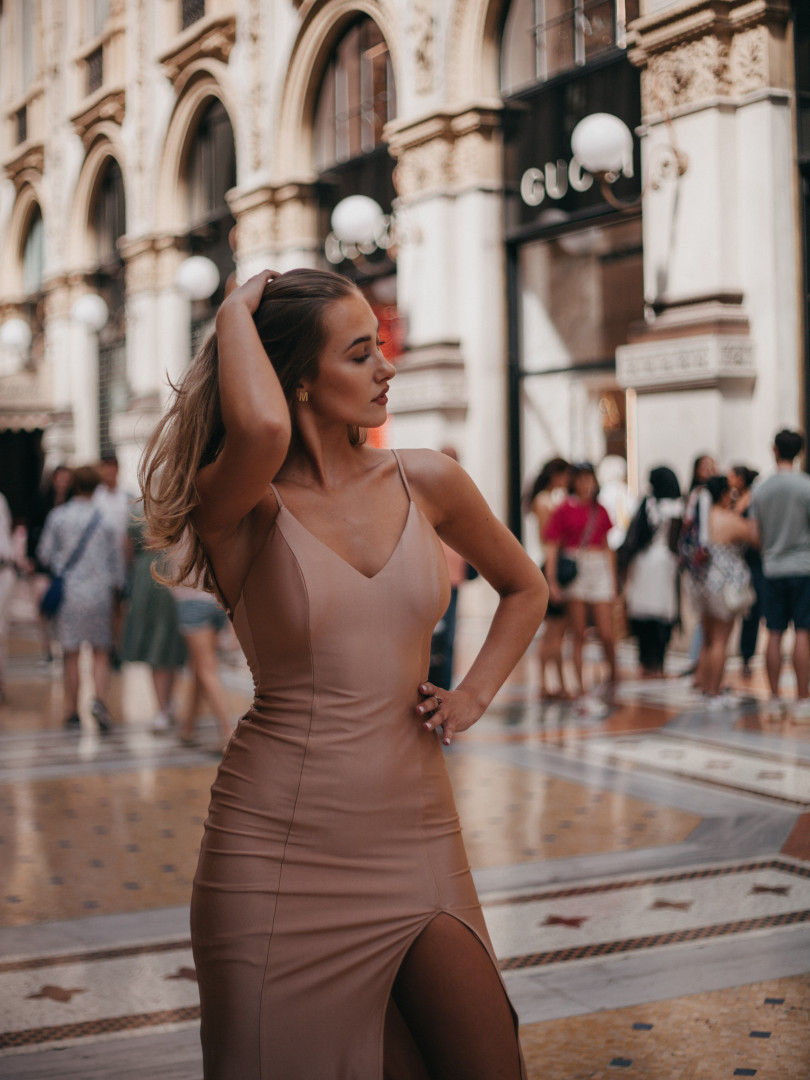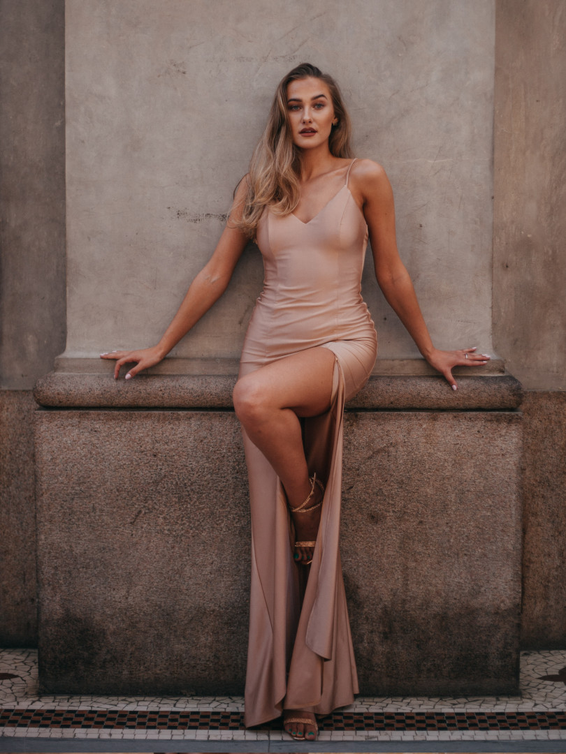 Długość: Zmierz długość od ramienia lub od miejsca, które ma stanowić górną linię sukienki, aż do miejsca, gdzie kreacja ma się kończyć.