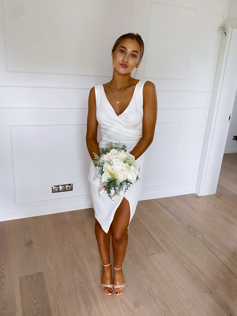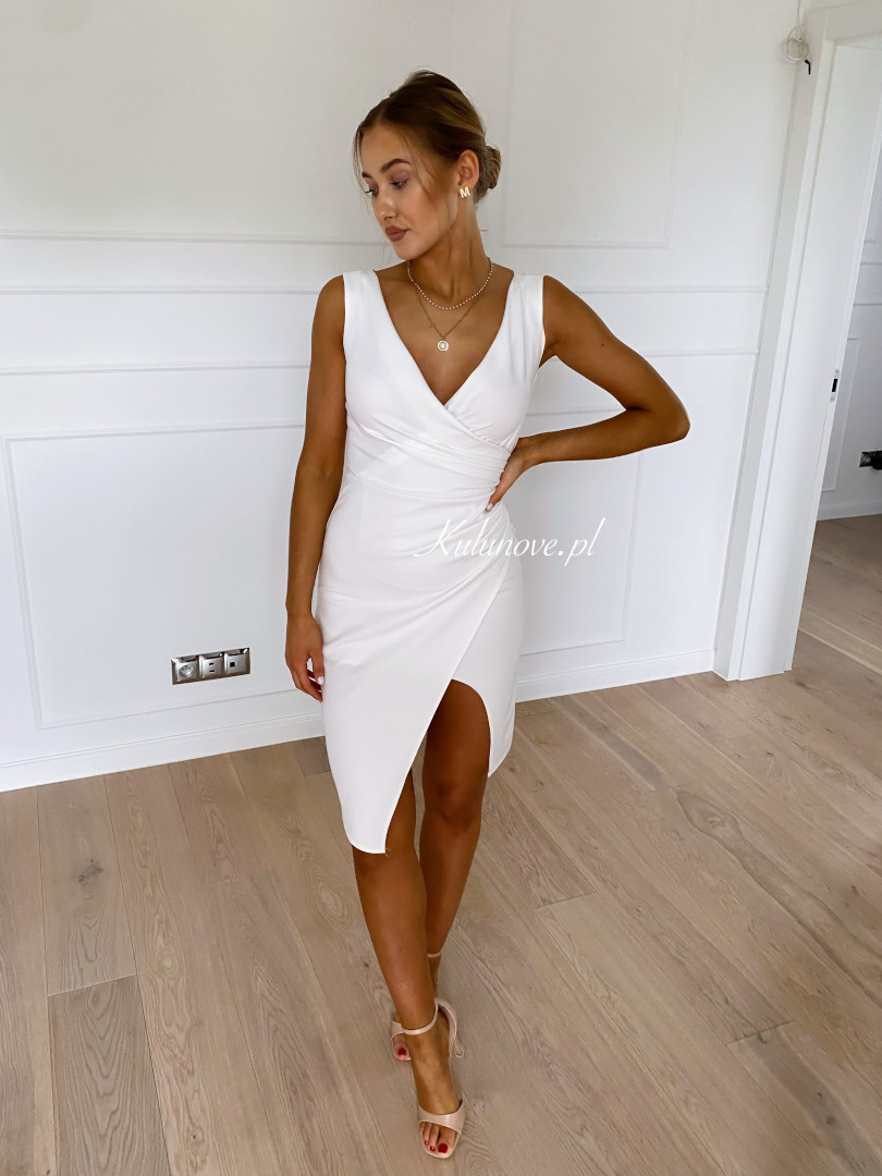 Mindy - elegancka asymetryczna sukienka w kolorze ecru