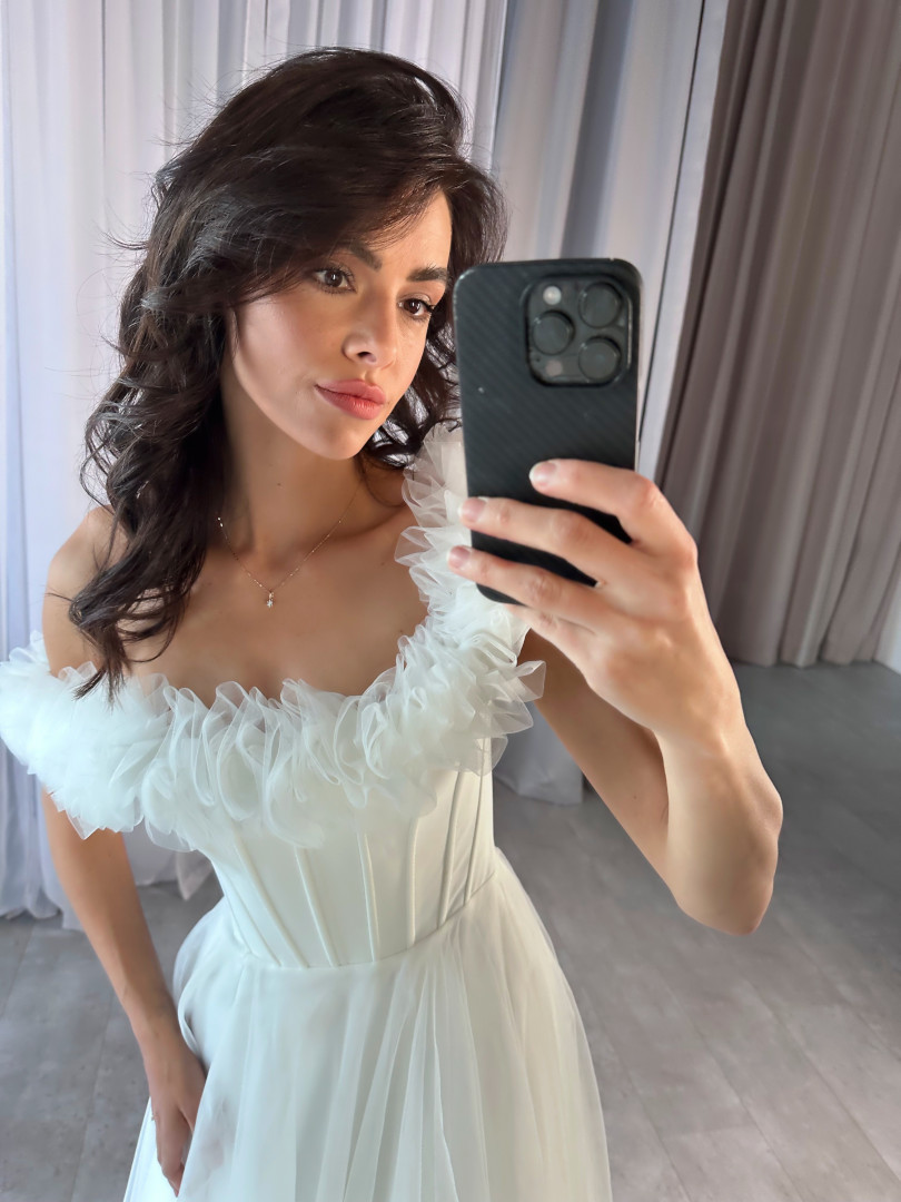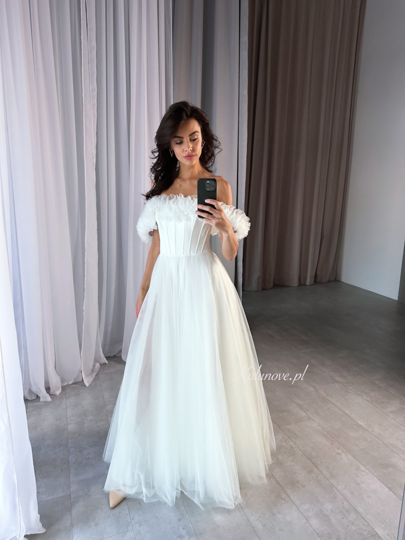 Moana - gorsetowa suknia ślubna z hiszpańskim dekoltem z odkrytymi ramionami