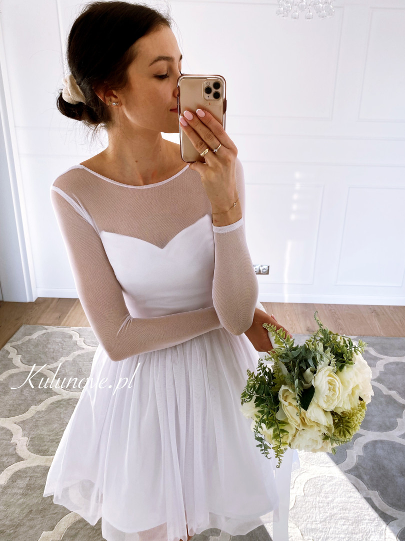 Rozkloszowana sukienka w kolorze czystej bieli.