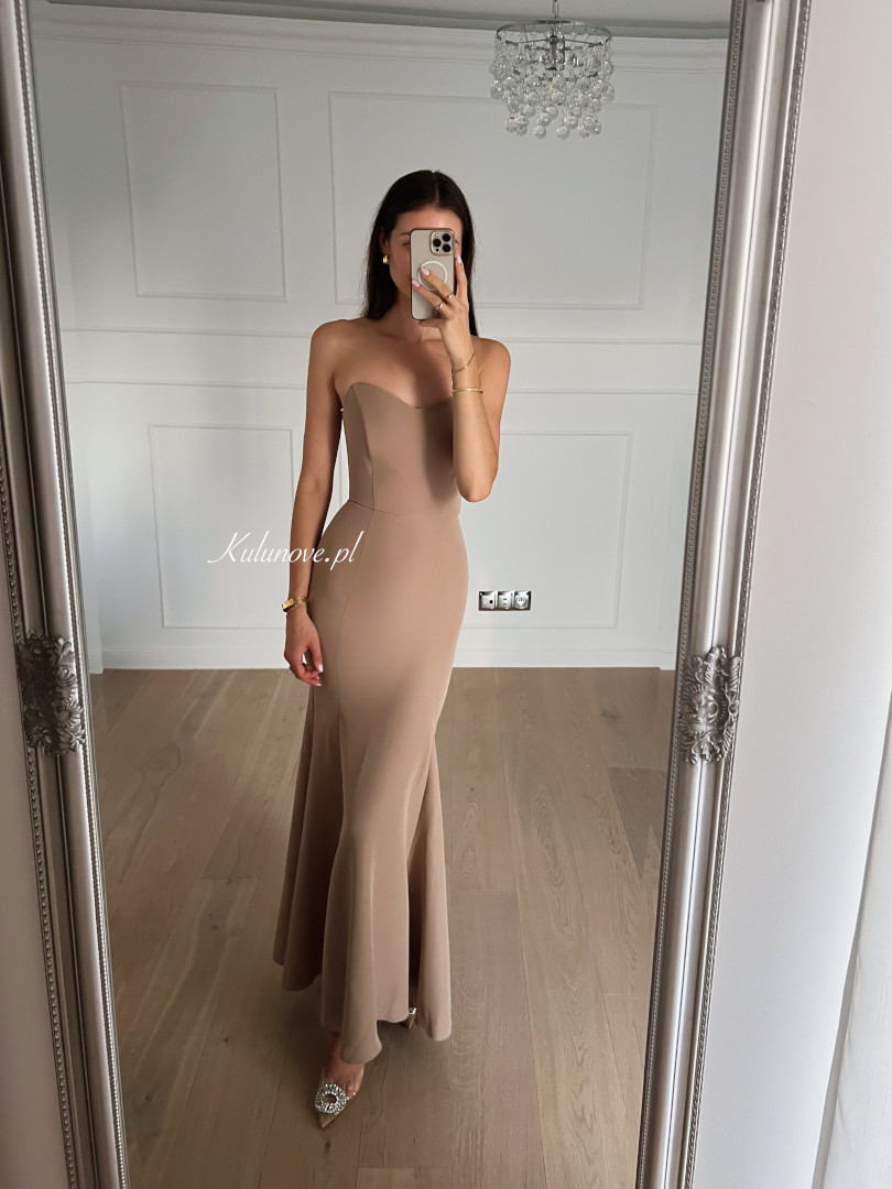 Monalisa - dopasowana gorsetowa sukienka rybka w kolorze beżowym