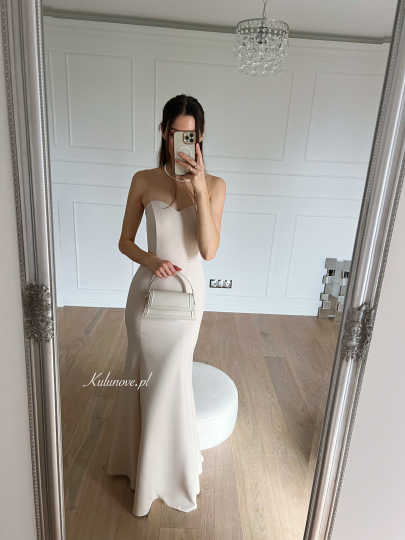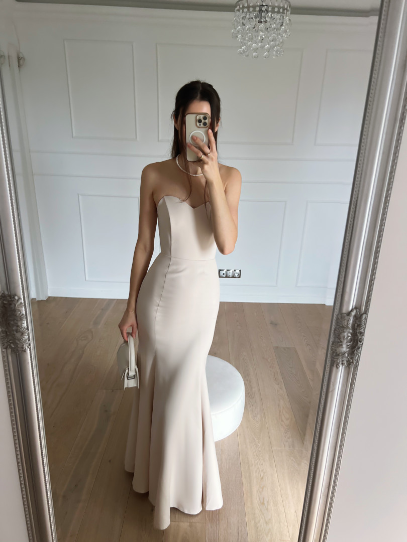 Monalisa - elegancka gorsetowa sukienka rybka w kolorze jasnego beżu
