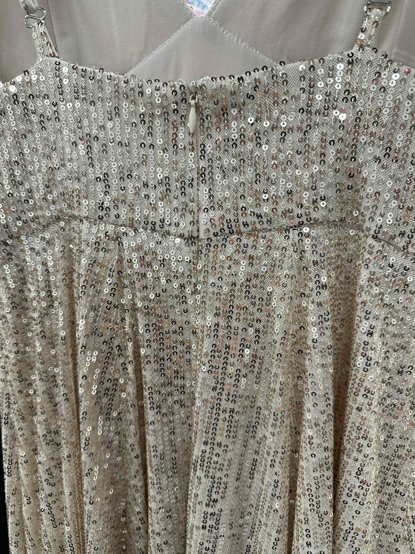 Sukienka posiada drobny ubytek w cekinach z tyłu.