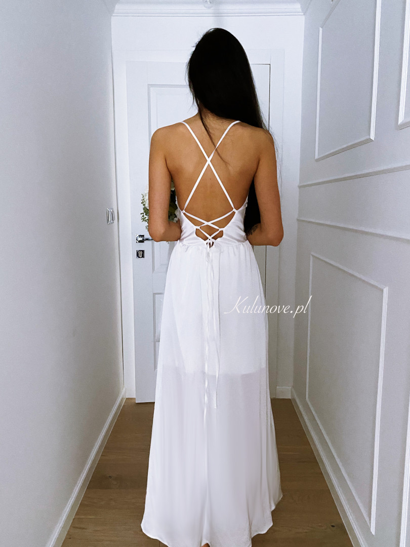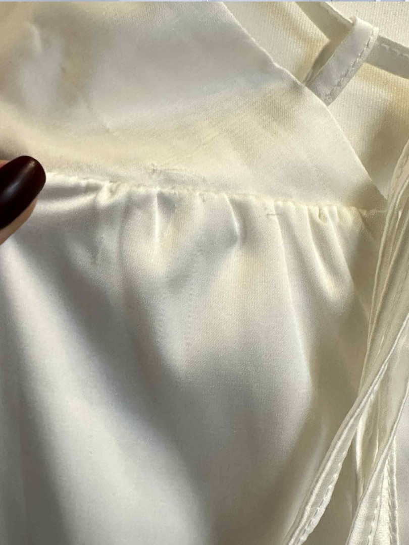 Likwidacja modelu, sukienka posiada drobne zaciągnięcia na tyle, które nie wypływają na funkcjonalnosć sukienki.