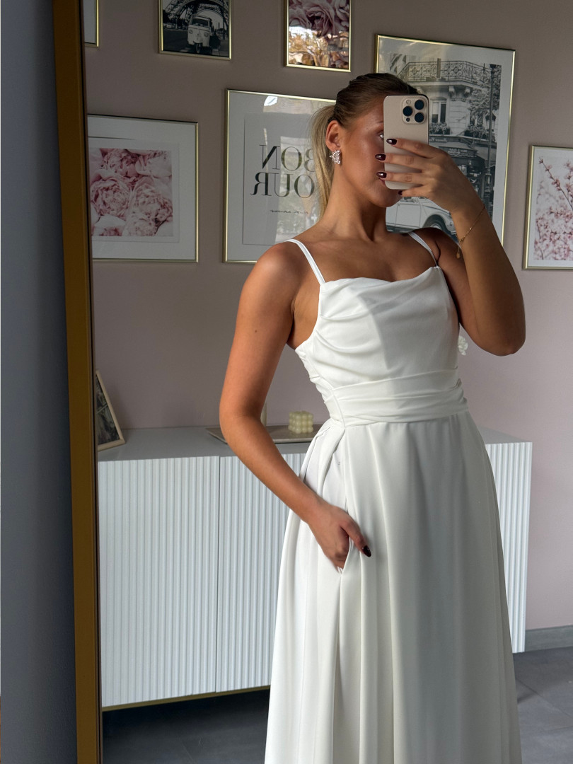 Cynthia - klasyczna, prosta suknia w kolorze śmietankowym Okazje