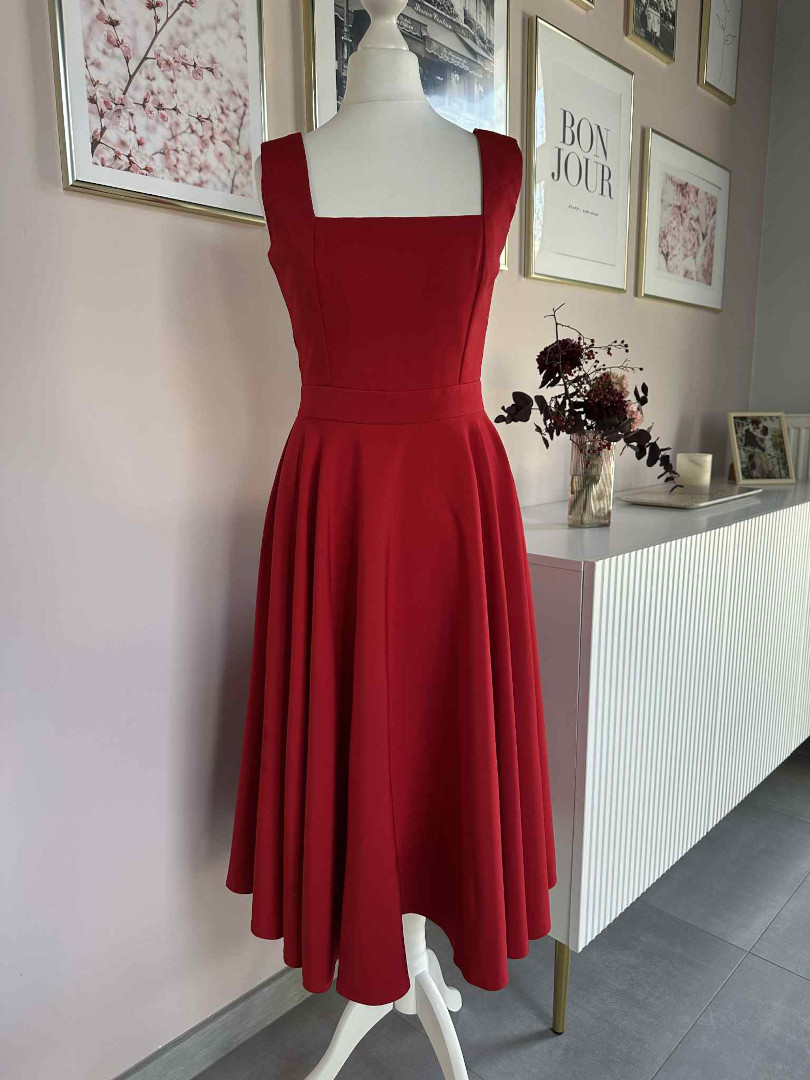 Sydney - wiskozowa sukienka midi w odcieniu bordowym Dekolt