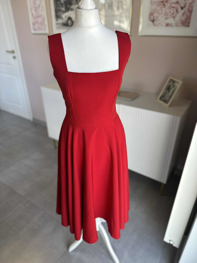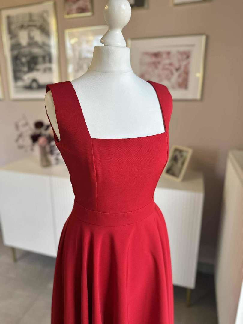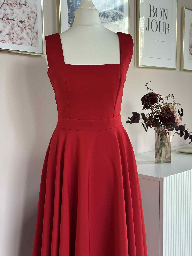 Angelina maxi - czerwona rozkloszowana kopertowa sukienka maxi z odkrytymi ramionami Styl