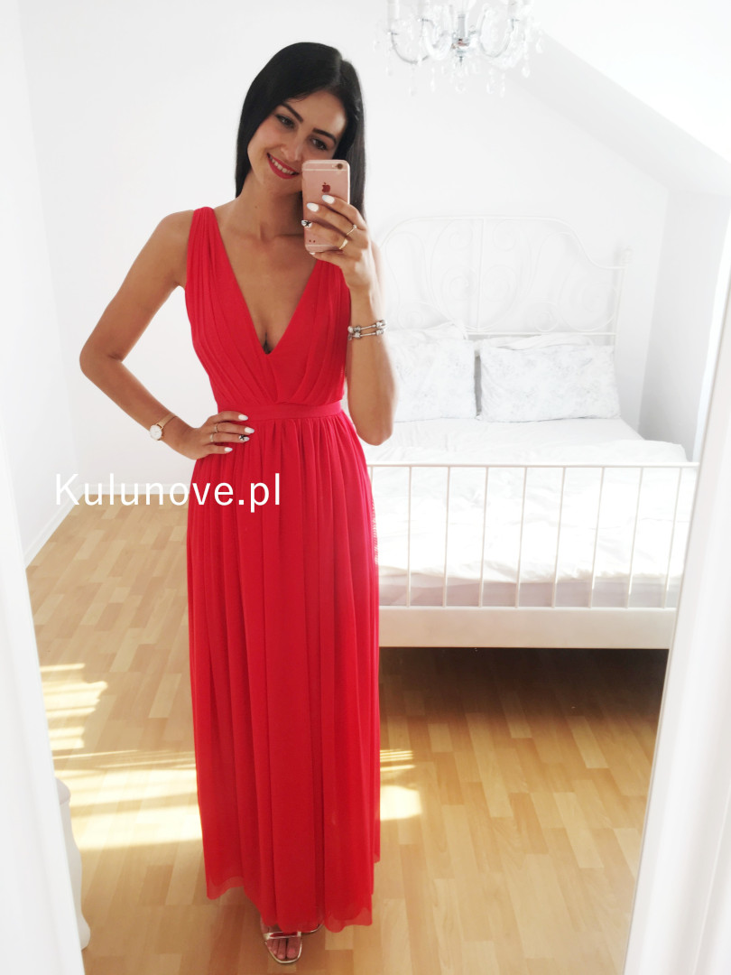 Paris - niesamowita sukienka maxi ze zwiewnego, tiulowego materiału z rozcięciem na nogę