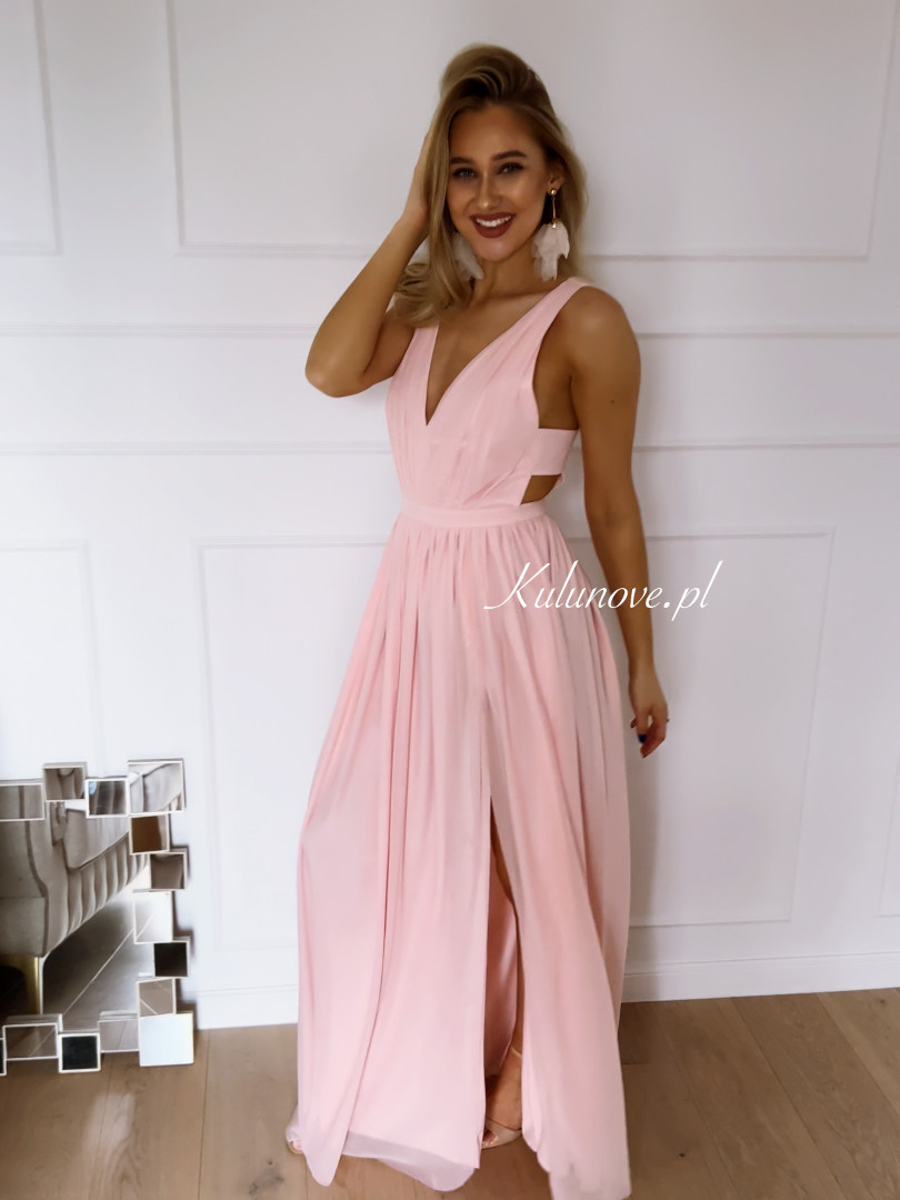Paris - niesamowita sukienka maxi ze zwiewnego, tiulowego materiału z rozcięciem na nogę