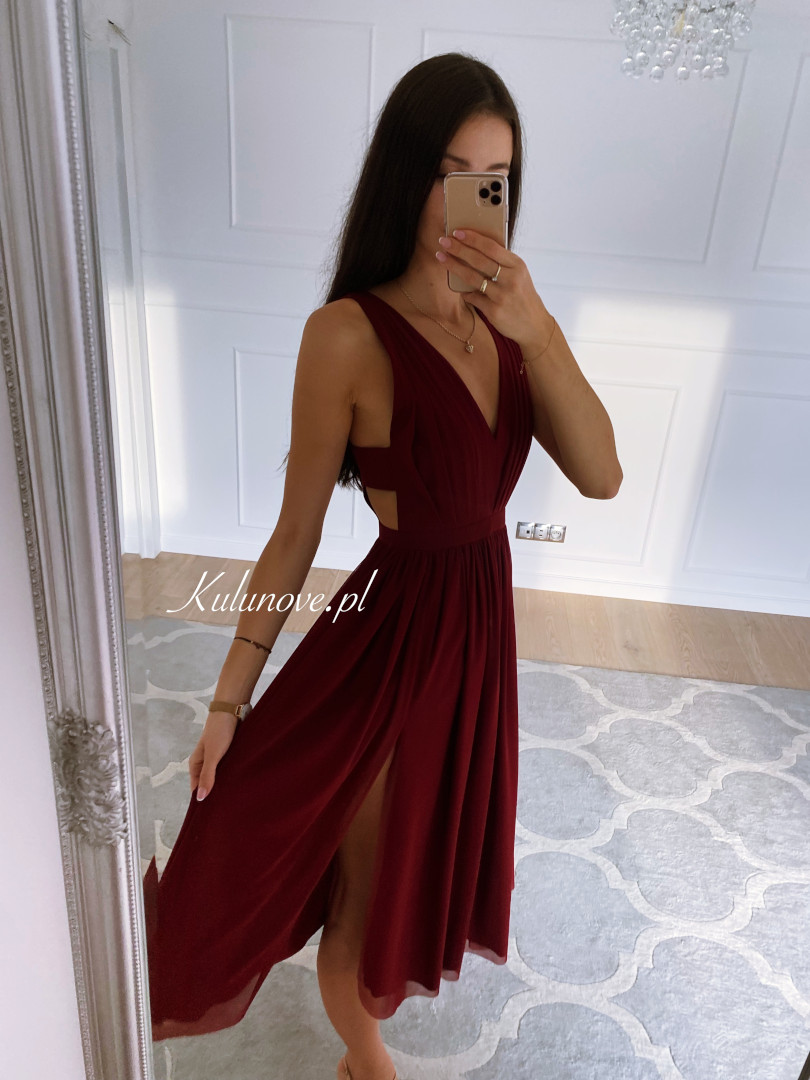Niesamowita sukienka midi ze zwiewnego, tiulowego materiału z rozcięciem na nodze.