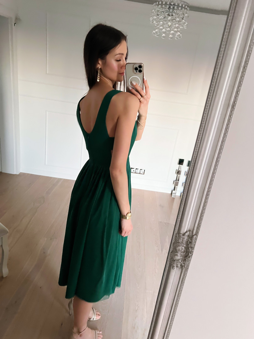 Paris zielona - tiulowa sukienka midi z wyciętymi bokami