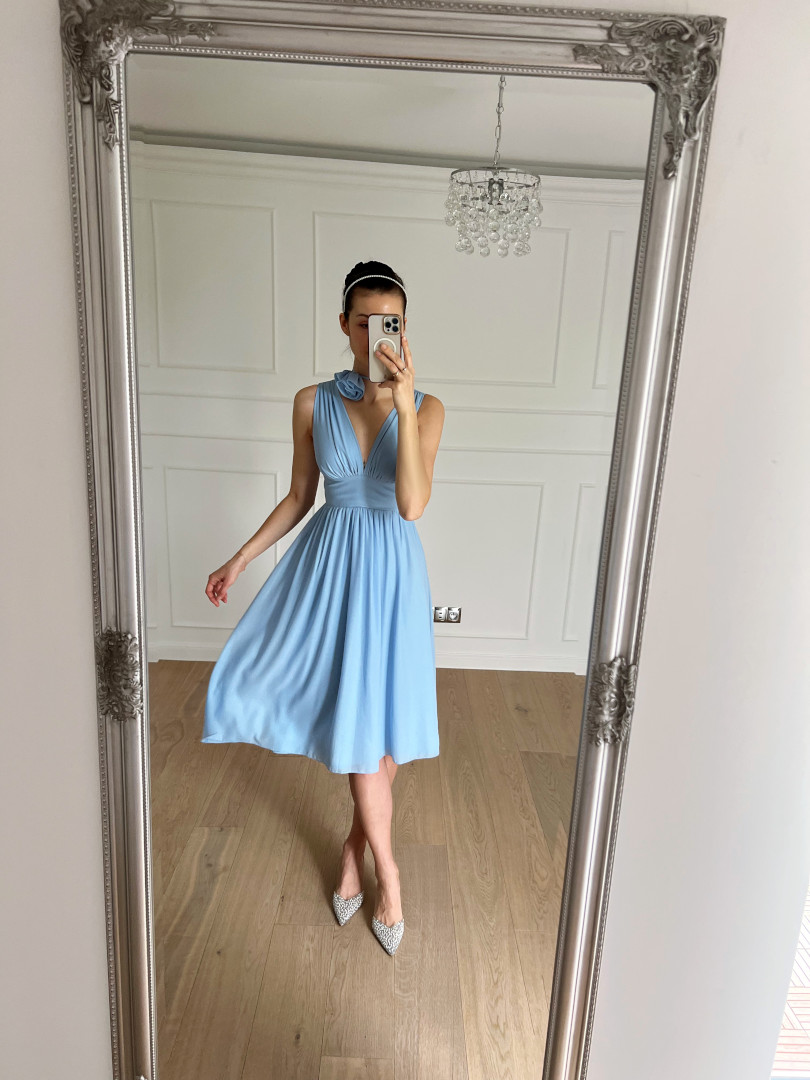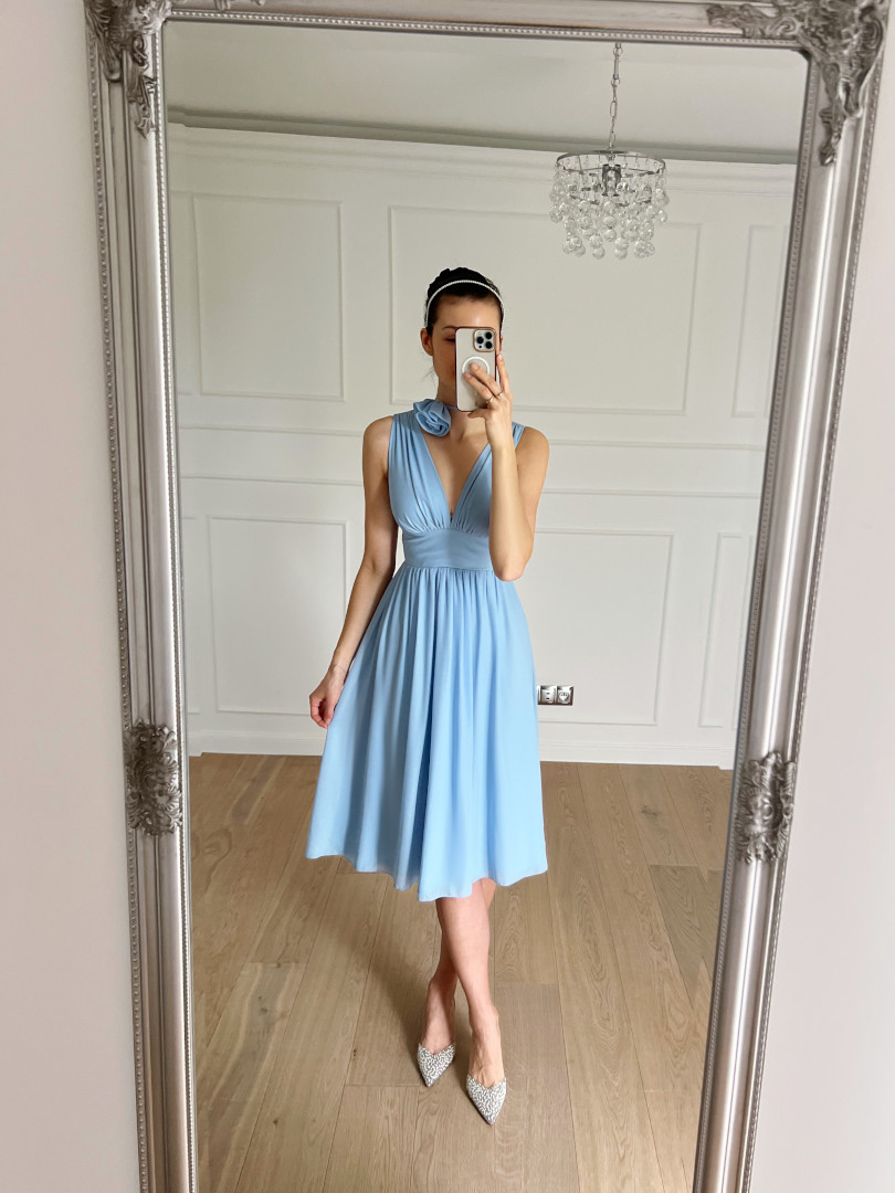 Sydney - wiskozowa sukienka midi w odcieniu bordowym Dekolt