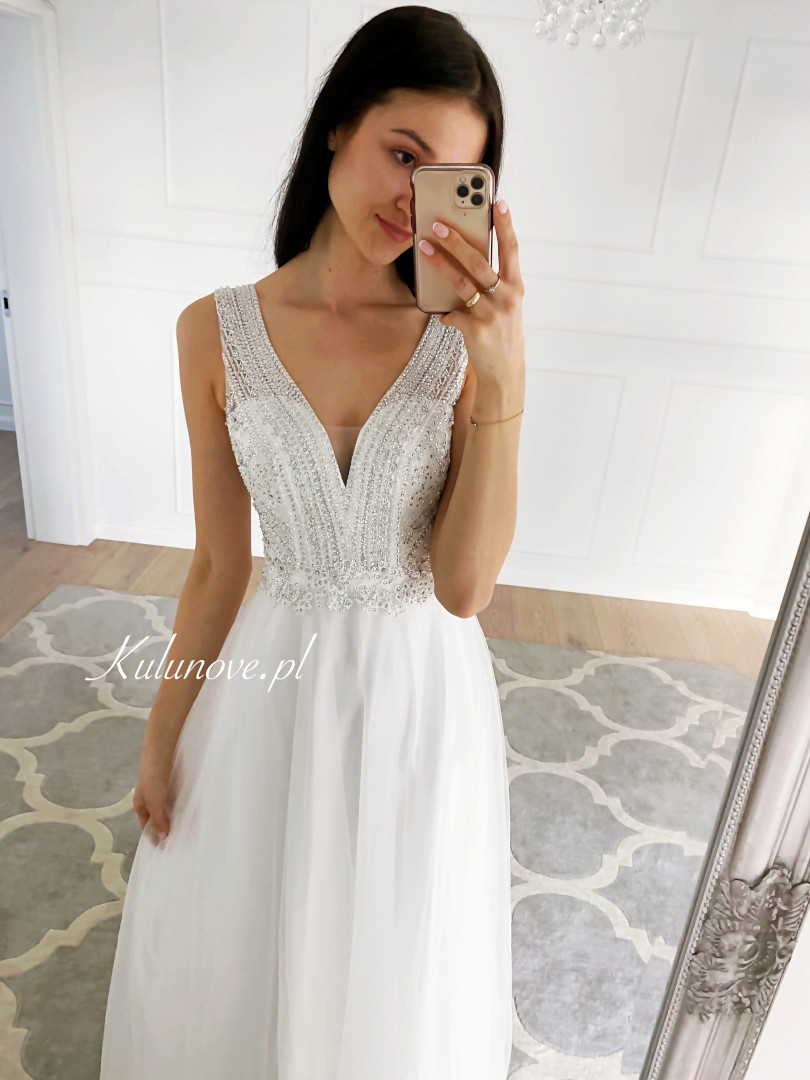 Princess - wyszywana suknia ślubna z tiulowym dołem o kroju księżniczki