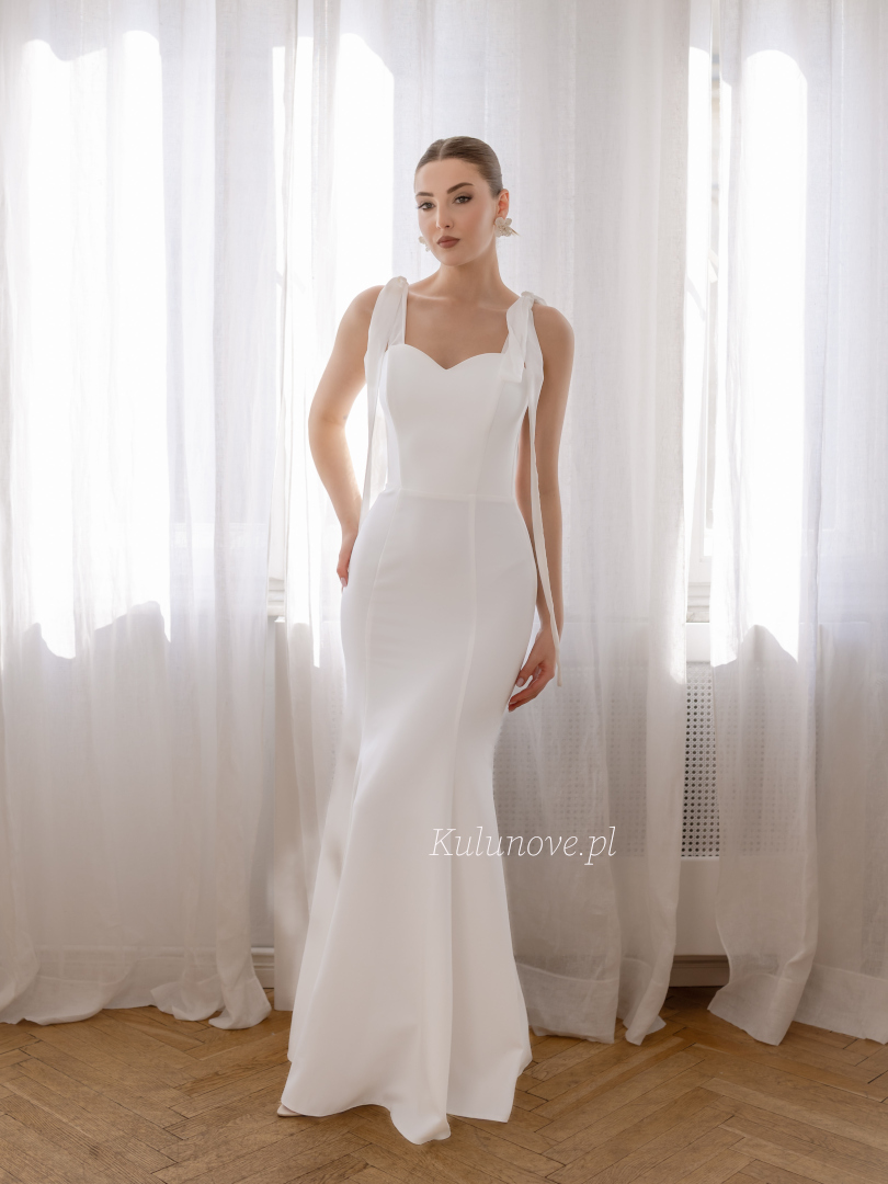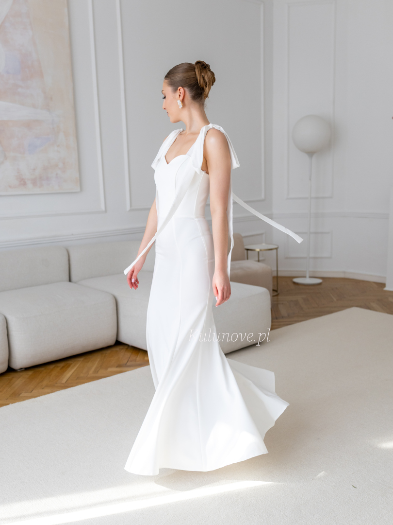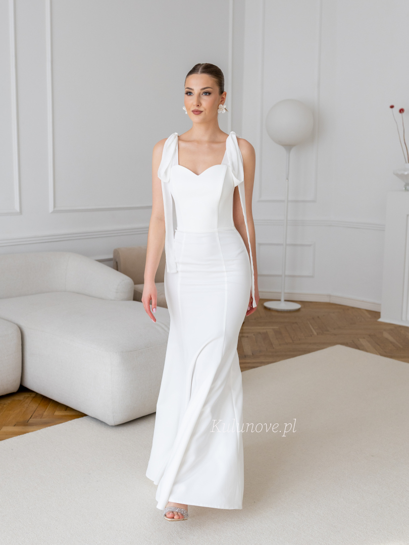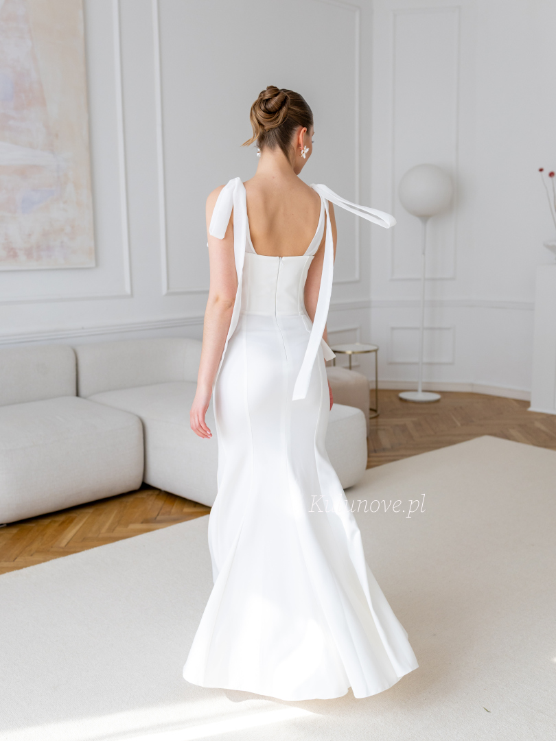 Elegancka sukienka ślubna o kroju rybki, pięknie podkreślająca sylwetkę.