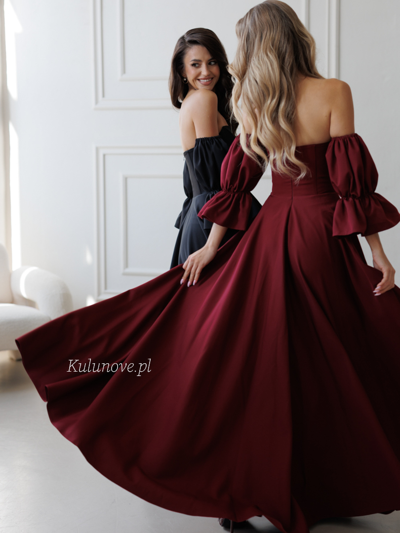 Seniorita - czarna długa czarna sukienka hiszpanka z odkrytymi ramionami