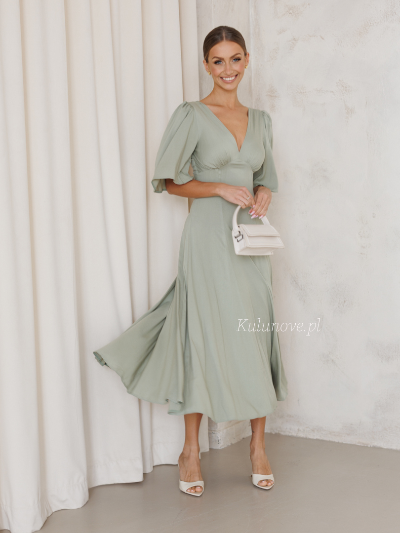 Zwiewne, lekko rozkloszowane rękawy oraz delikatny, ale elegancki krój sprawiają, że sukienka ta pasuje zarówno na romantyczne spotkania, jak i na bardziej formalne wydarzenia.
