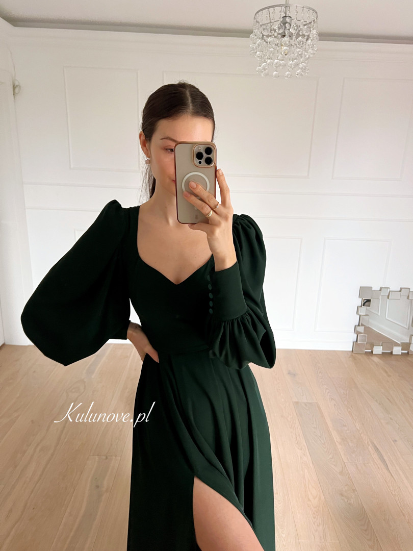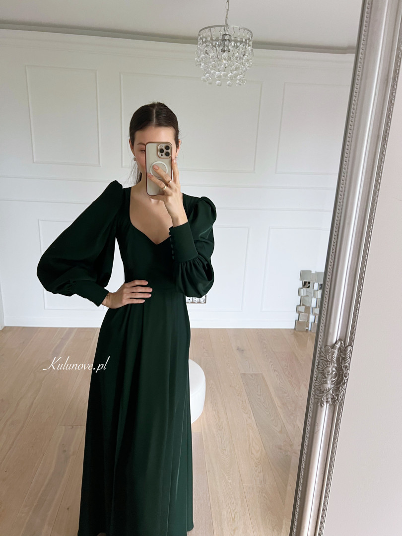 Sydney - wiskozowa sukienka midi w odcieniu bordowym Dekolt
