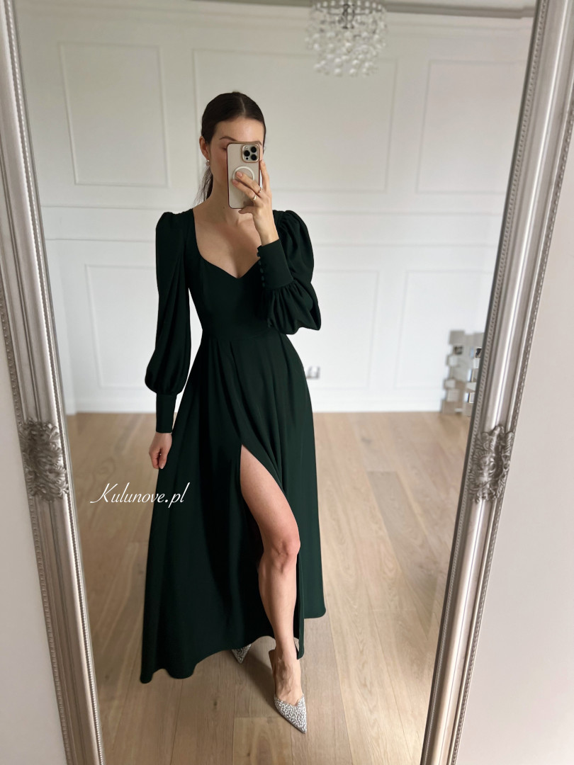 Lianna - czekoladowa dopasowana sukienka na długi rękaw z usztywnianymi ramionami Druhny Sukienki plus size