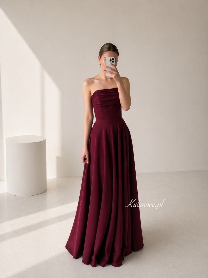 Zjawiskowa sukienka maxi w głębokim odcieniu bordo zachwyca swoją elegancją i wyrazistym charakterem.