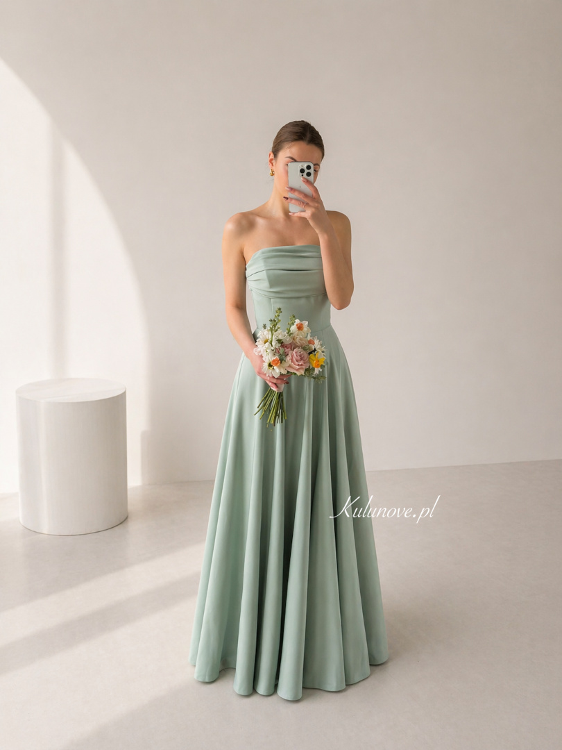 Delikatna sukienka maxi w odcieniu szałwii to idealny wybór na wyjątkowe okazje.