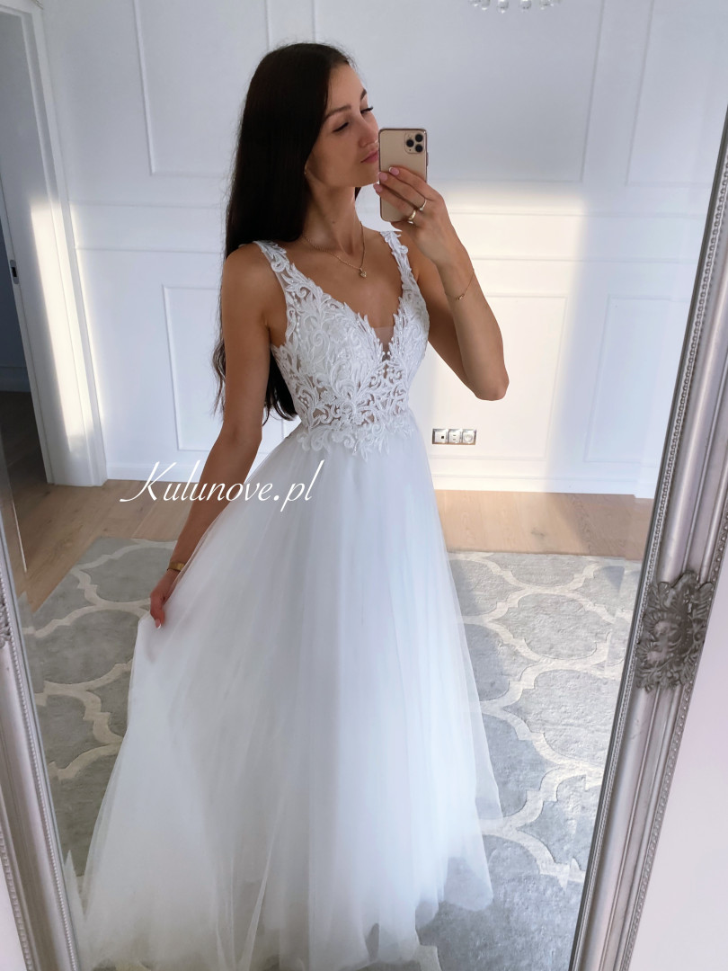 Elegancka, pełna wdzięku kreacja na dzień ślubu.