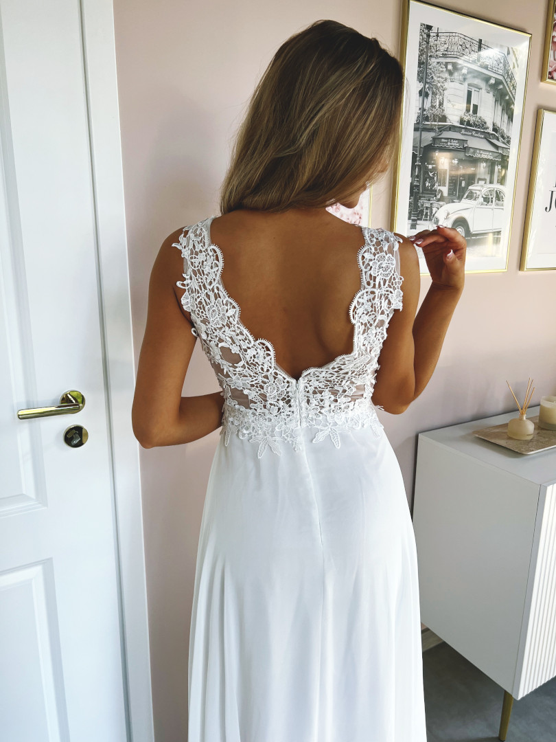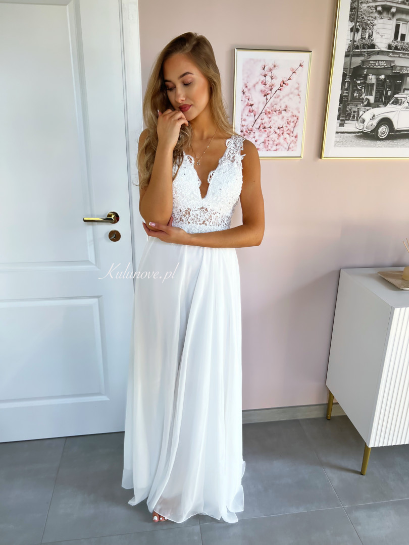 Cynthia - klasyczna, prosta suknia w kolorze śmietankowym Okazje