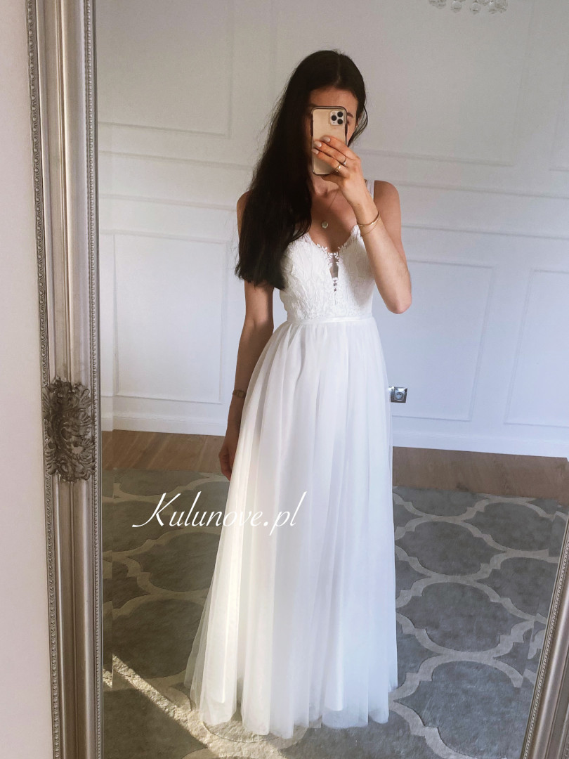 Niesamowita suknia z piękną koronkową górą - idealna na ślub.